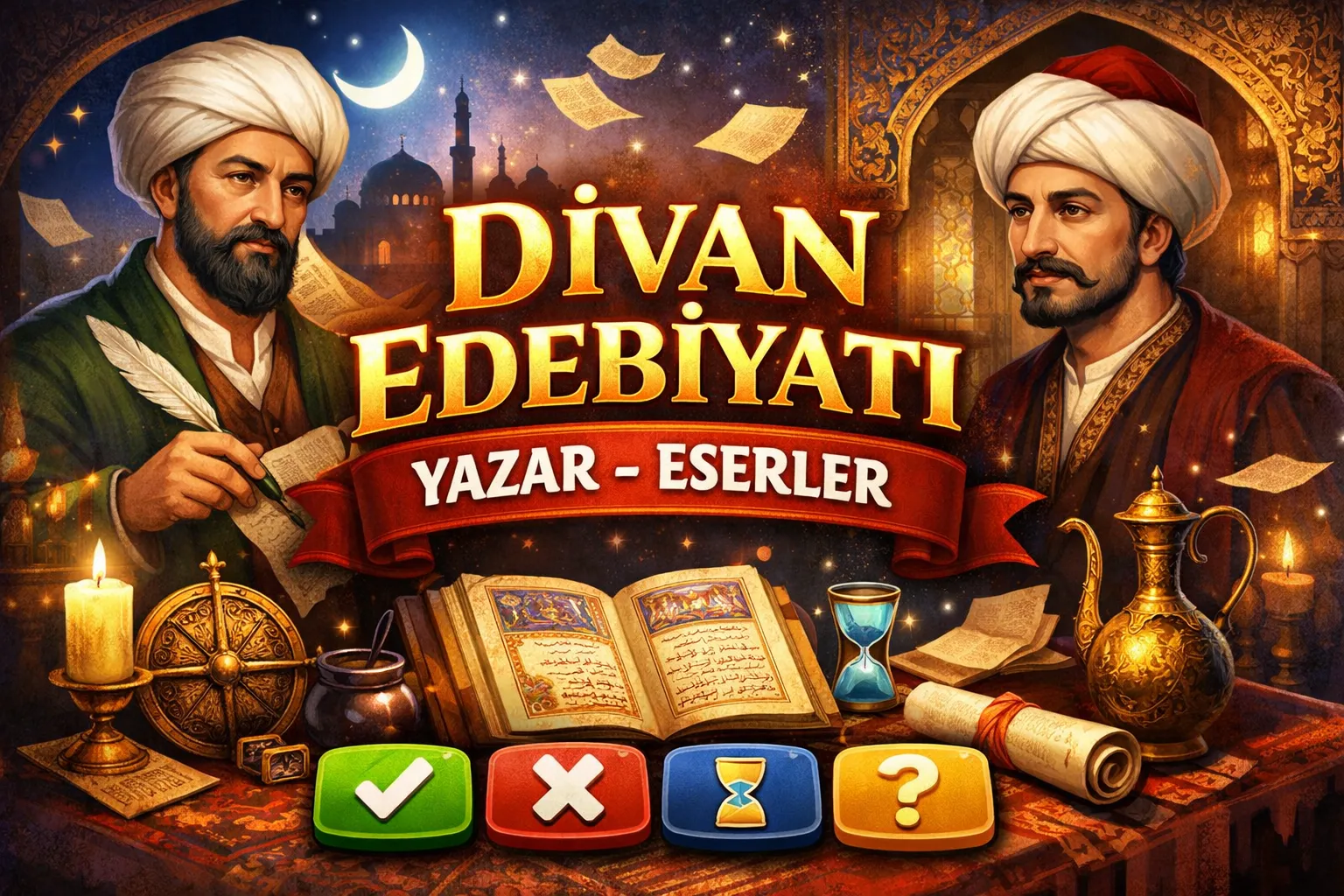 Divan edebiyatı tüm yüzyılları kapsayan bir soru. Yazar-Eser ezberi için eğlenceli, interaktif bir oyun.