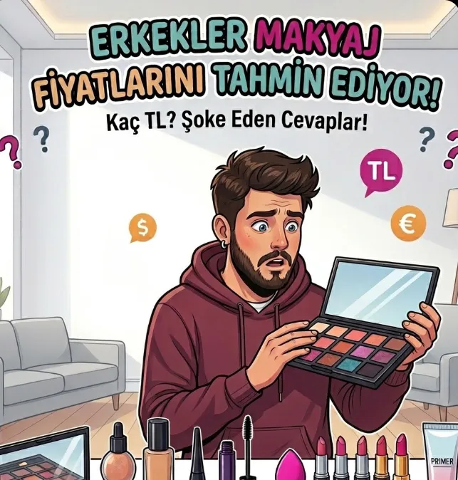 ERKEKLER MAKYAJ MALZEMELERİNİN FİYATLARINI TAHMİN EDİYOR